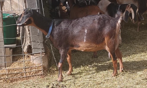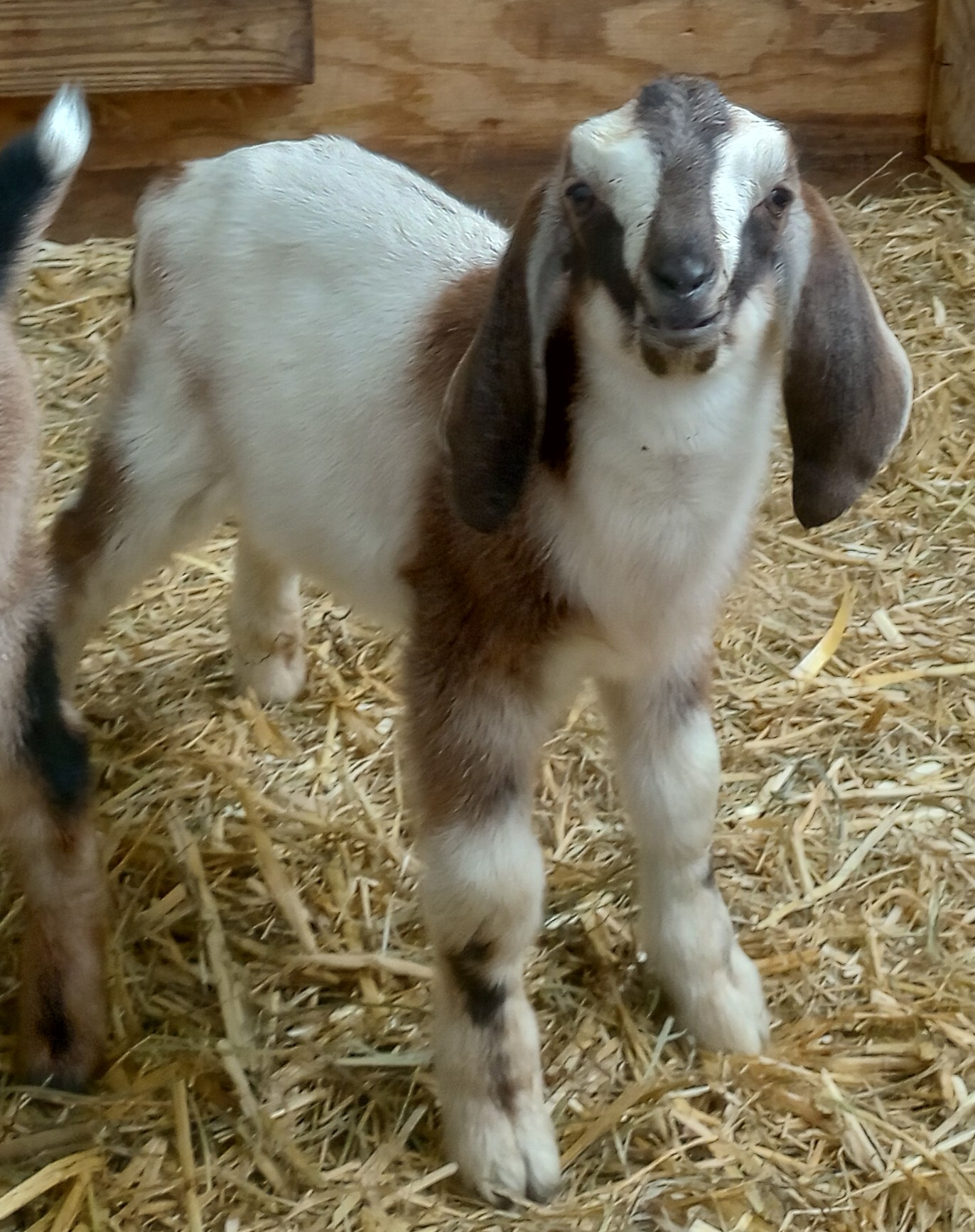 Sire: Green Gables DT Moses *B View extended pedigree here DOB: 4/27/21 Percentage: (Nubian/Nigerian) Height: 26" (at 3yrs old) G6S Normal by parentage |
