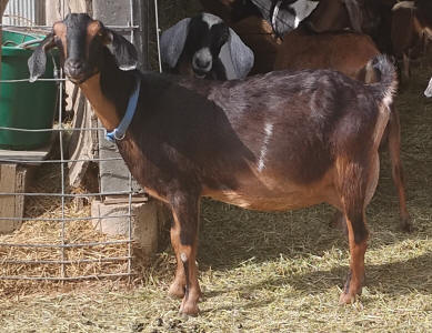 Manna is a VERY exciting young doe out of one of our all time favorite does. I am so super excited with how Manna's ff udder turned out! Absolutely LOVELY. Perfect shape with a high, wide rear udder, smoothly blended and extended foreudder and ideal balance when viewed from the side. Her udder texture is an absolute dream and her orifices and teat size are perfect with great teat placement. Her production is excellent even as a first freshener. Manna's body conformation is equally nice with a long, level topline, strong feet and legs, good length, depth and width throughout. Her breed character is decent as well.