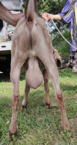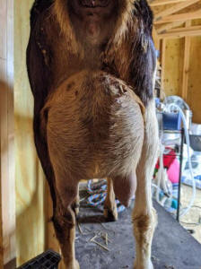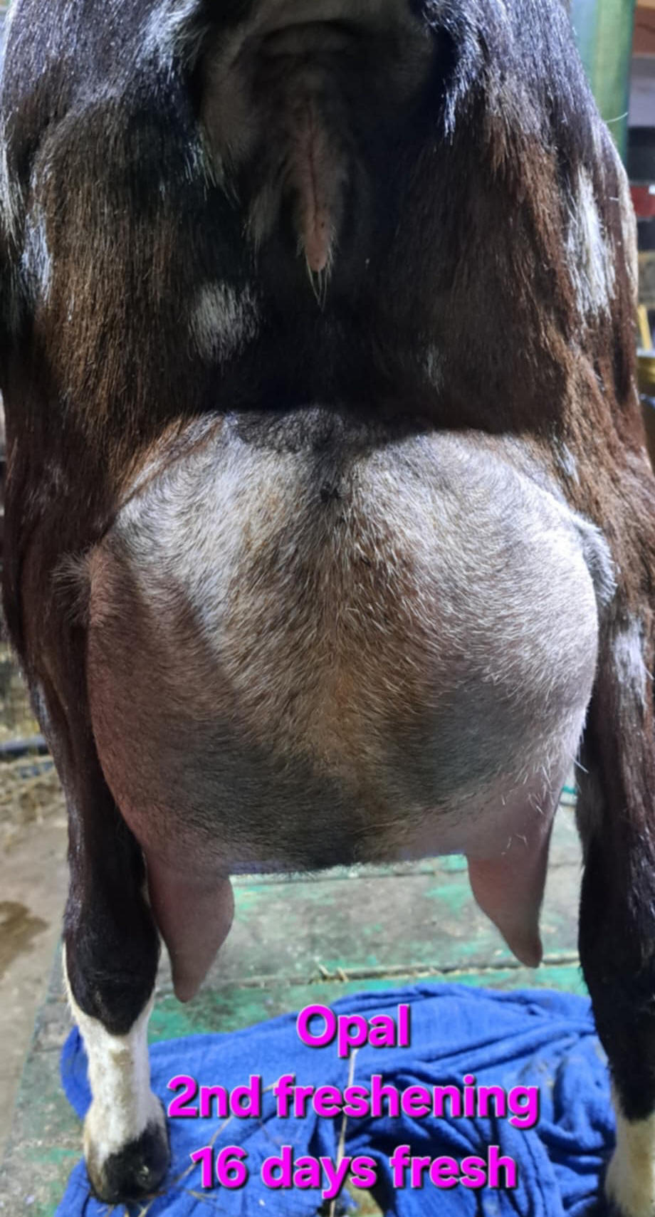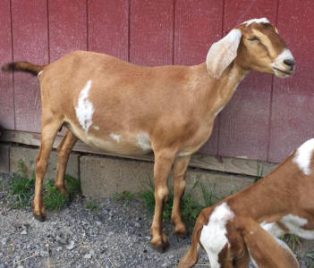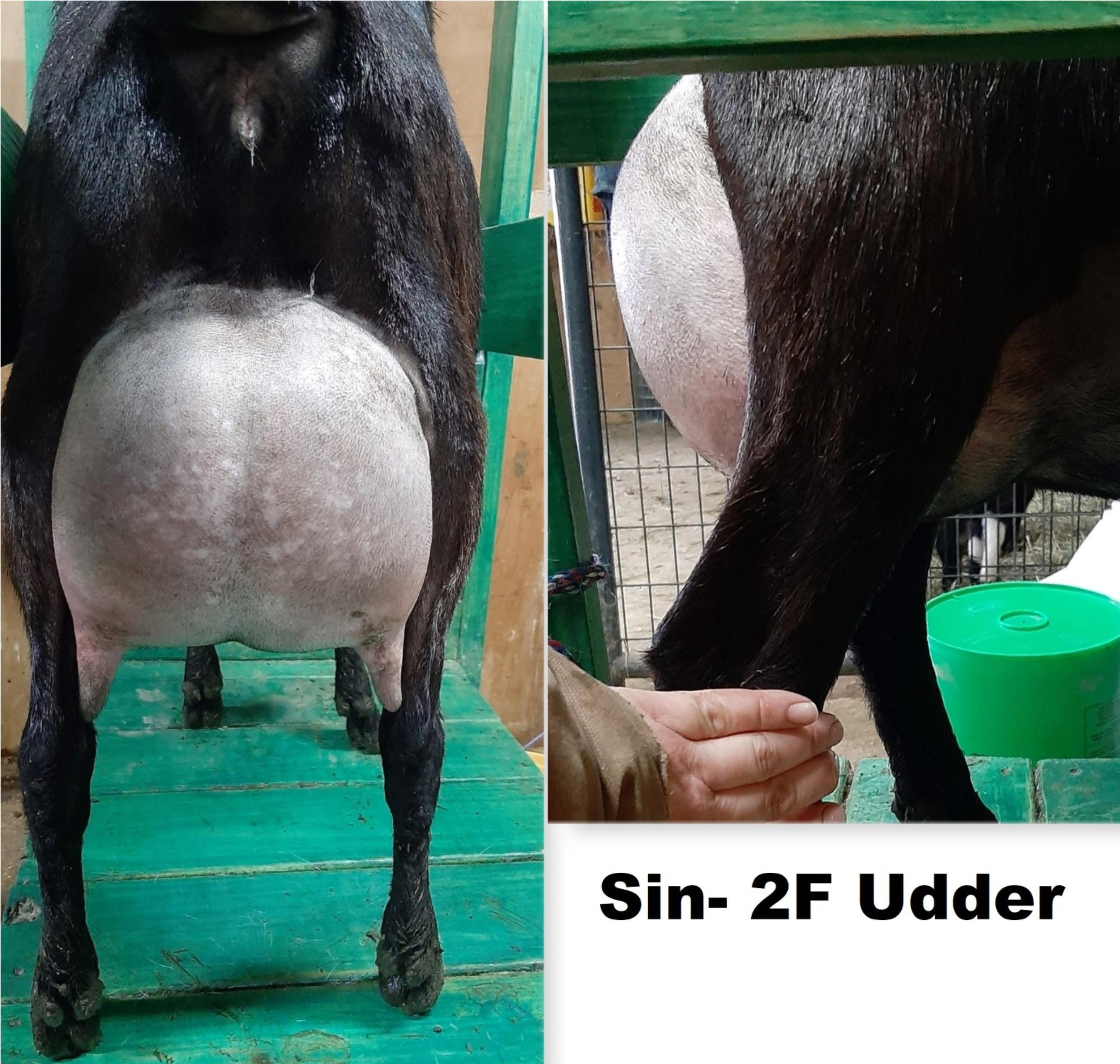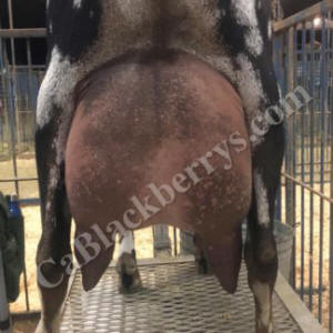 Willow brings us new bloodlines while keeping some of our very favorite lines from our own herd. His maternal grandsire, Asher, is the son of Green Gables SOF Snow Camo 3*P (aka Cami) and Green Gables Eclipse +*B (aka 'Tex' - full sister to Cali). His dam's dam (Snowdrop) is also related to our Luna and Thunder lines and has an absolutely incredible udder. His sire side brings in all new blood to our herd with both Blackberry and Cedar Creek coming through the Mosaic's herd. Willow brings nice width, a long body, correct feet and legs, well extended brisket and nice breed character. His dam's udder is socked on TIGHT with a smooth foreudder and a high, wide rear udder. His dam is on milk test and when she earns her milk star, Willow will have his *B. Excited to see what Willow will do for our herd!!