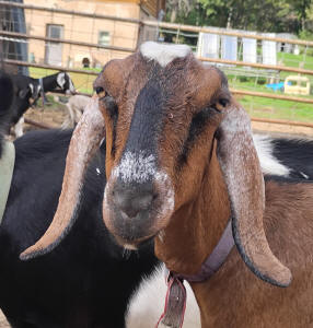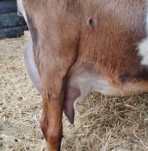 Swan is as graceful as her namesake. She is long bodied with a long bone pattern throughout and has super long, wide ears. She also has an incredible roman nose. She also has some of the best udders in the MiniNubian world behind her as well as heavy milkers with high butterfat (her dam was top 10 for butterfat in 2020 and aunt, Penny Candy, was top ten for BF in 2024). Swan's udder is incredible! Her udder texture is buttery soft, teats are well placed, perfectly sized with great orifices. Her capacity and production is AMAZING. Her udder shape is great. Foreudder is wide, deep and well extended. Rear udder height is good and very wide. Medial is very nice as well. I am thrilled with her udder! She also puts everything into the milk pail.